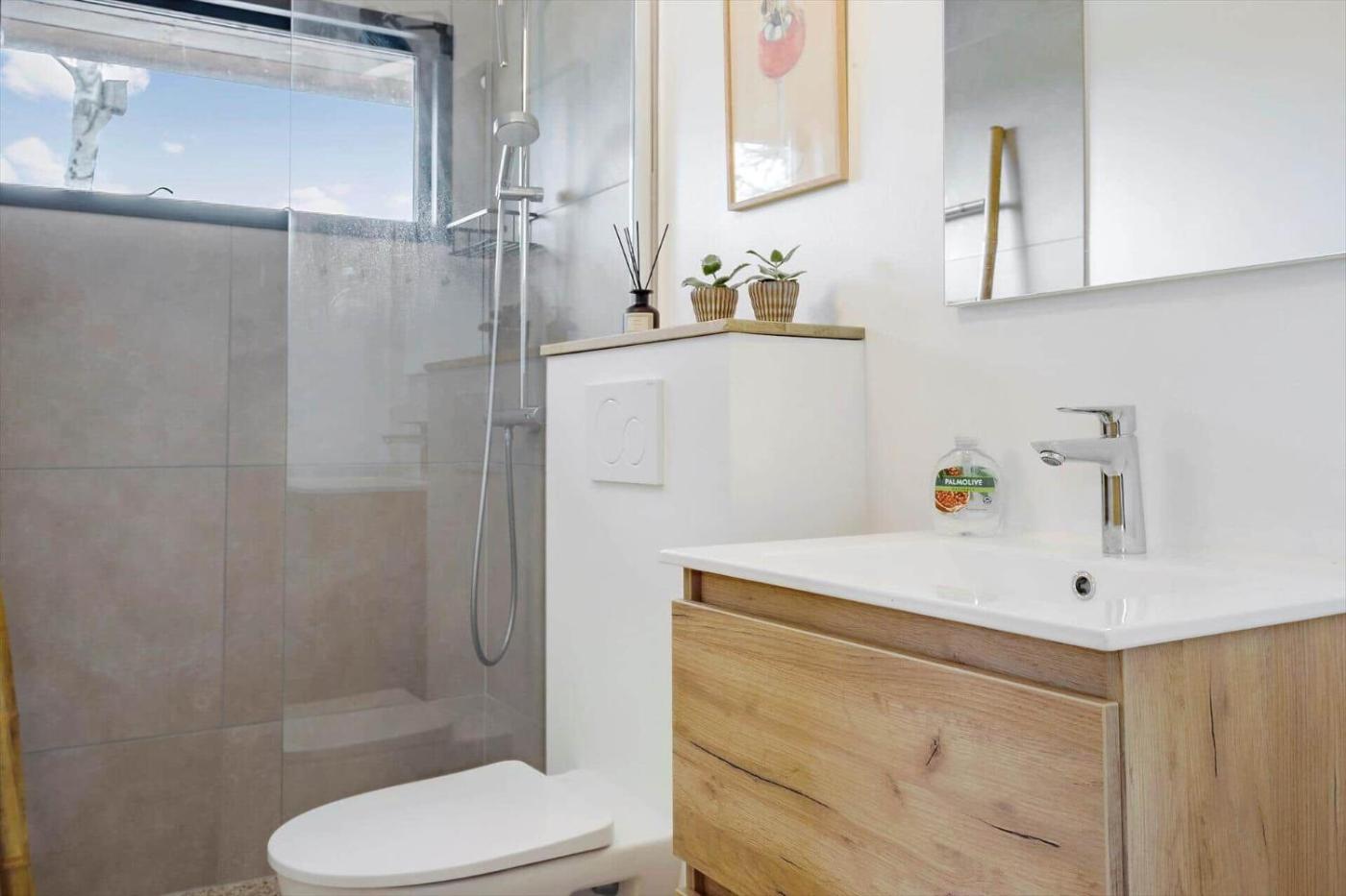The 2-bedroom holiday home comes with a living room with a TV, a fully equipped kitchenette with a dishwasher and oven, and 1 bathroom with shower.