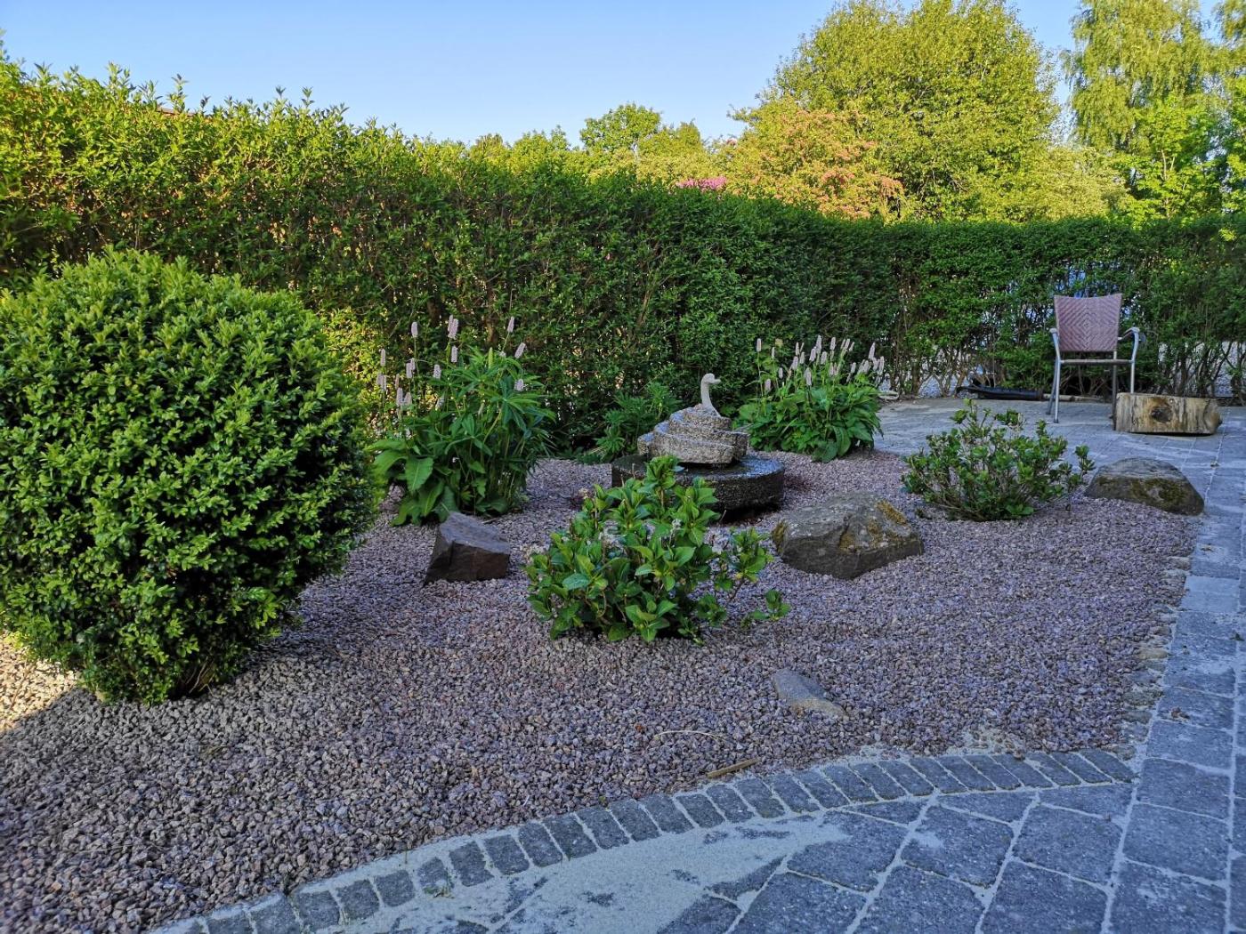 Double Room with Private Bathroom. The double room features parquet floors, heating, as well as a private bathroom featuring a walk-in shower. The double room offers a flat-screen TV with cable channels, soundproof walls, a seating area, a wardrobe as well as garden views. The unit offers 1 bed. ;