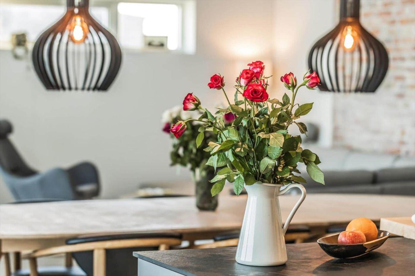 The spacious holiday home features 3 bedrooms, a TV, a fully equipped kitchen with a dishwasher and an oven, a washing machine, and 2 bathrooms with a bath.
