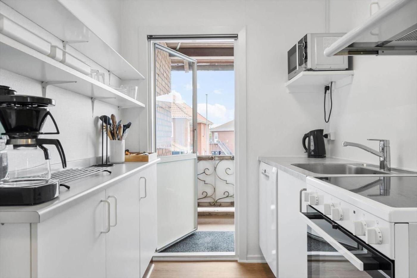 Apartment. This spacious apartment consists of 2 bedrooms, kitchenette and 1 bathroom with a shower. The well-equipped kitchenette features a stovetop, a refrigerator, a dishwasher and a microwave. This apartment has a washing machine, a tea and coffee maker, a TV and a balcony. The unit offers 3 beds.