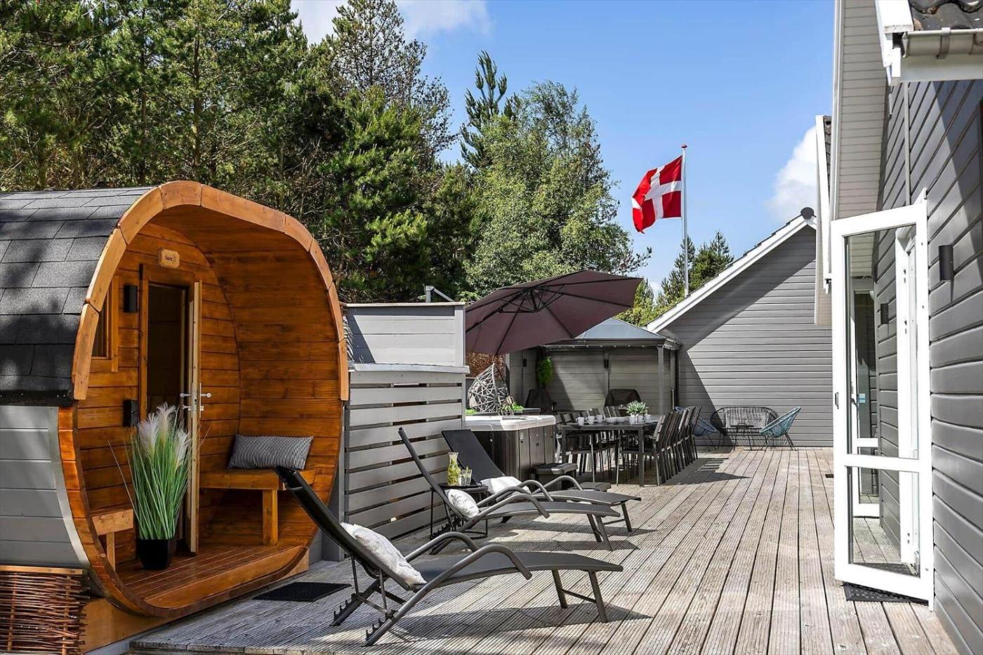 Holiday Home. This holiday homes special features are the hot tub and the sauna. This spacious holiday home comprises 7 bedrooms, kitchenette, a terrace and 3 bathrooms with a shower. Guests will find a stovetop, a refrigerator, a dishwasher and an oven in the fully equipped kitchenette. The holiday home also provides guests with a barbecue. Featuring outdoor furniture, this holiday home also provides a washing machine, a tea and coffee maker and a TV. The unit offers 7 beds.