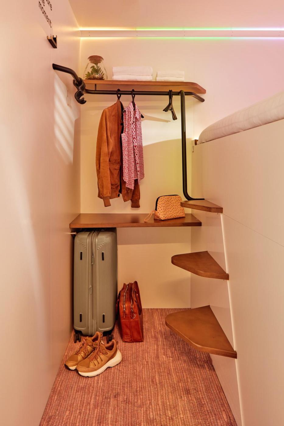 Hub. This double room has air conditioning, as well as a Bluetooth music connection, USB ports and funky lighting. ;