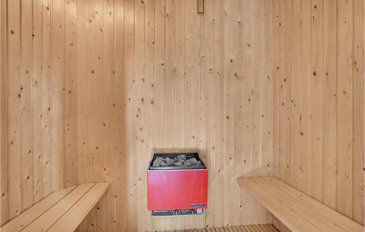 Three-Bedroom Holiday Home. Guests will have a special experience as this holiday home provides a sauna and a fireplace. Featuring a private entrance, this holiday home also comprises 3 separate bedrooms, 1 bathroom with a shower, a kitchen and a dining area. Guests will find a stovetop, a refrigerator, a dishwasher and kitchenware in the well-fitted kitchen. The holiday home also provides guests with a barbecue. This holiday home features a washing machine, a tea and coffee maker, a TV and outdoor furniture. The unit offers 5 beds.