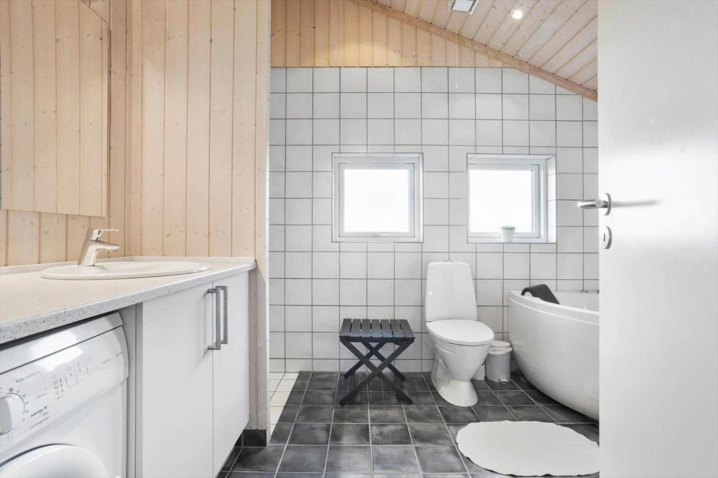 Holiday Home. This holiday homes standout features are the hot tub and sauna. Boasting 4 bedrooms and 1 bathroom with a shower, this holiday home has a well-fitted kitchenette and a terrace. Guests will find a stovetop, a refrigerator, a dishwasher and an oven in the fully equipped kitchenette. The holiday home also includes a barbecue. This holiday home has a washing machine, a tea and coffee maker, a TV and sea views. The unit offers 6 beds.