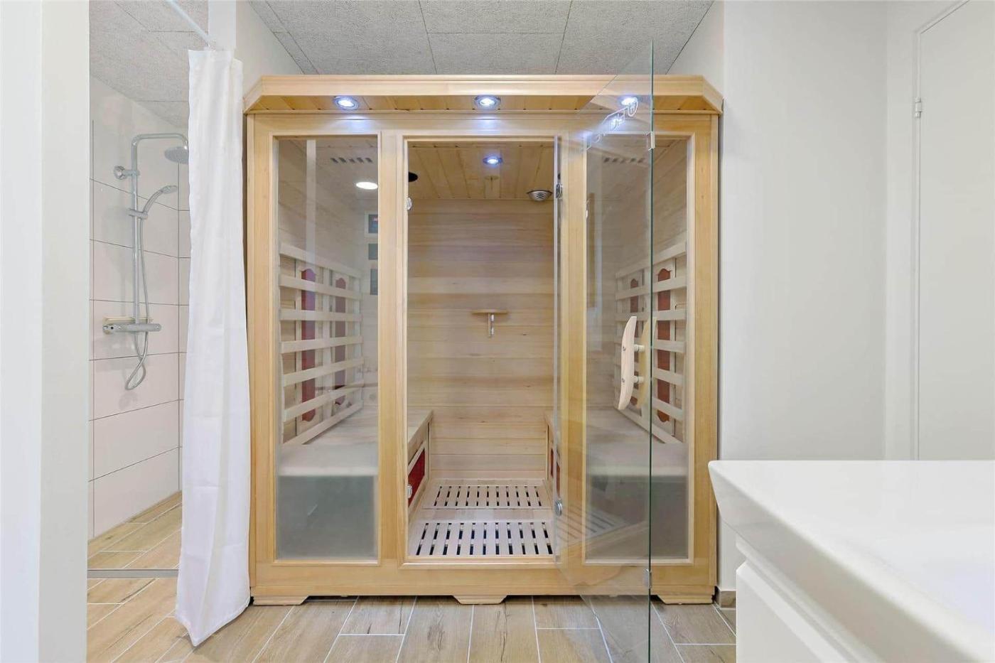 Holiday Home. The hot tub and sauna are the standout features of this holiday home. This spacious holiday home is comprised of 2 living rooms, 4 separate bedrooms and 2 bathrooms with a shower. Guests will find a stovetop, a refrigerator, a dishwasher and an oven in the well-fitted kitchenette. The holiday home also has a barbecue. Featuring a terrace, this holiday home also offers a washing machine, a tea and coffee maker and a TV. The unit offers 10 beds.