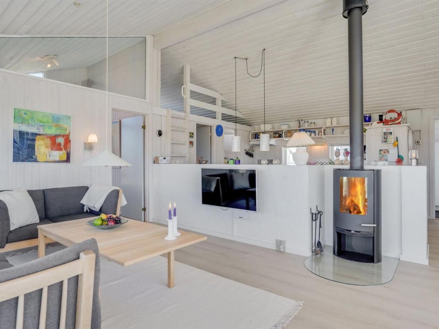 Holiday Home. This holiday homes special feature is the fireplace. This holiday home includes 3 bedrooms, kitchen, a terrace and 2 bathrooms with a shower. In the kitchen, guests will find a stovetop, a refrigerator, a dishwasher and kitchenware. This holiday home offers a seating area and a TV. The unit has 3 beds.