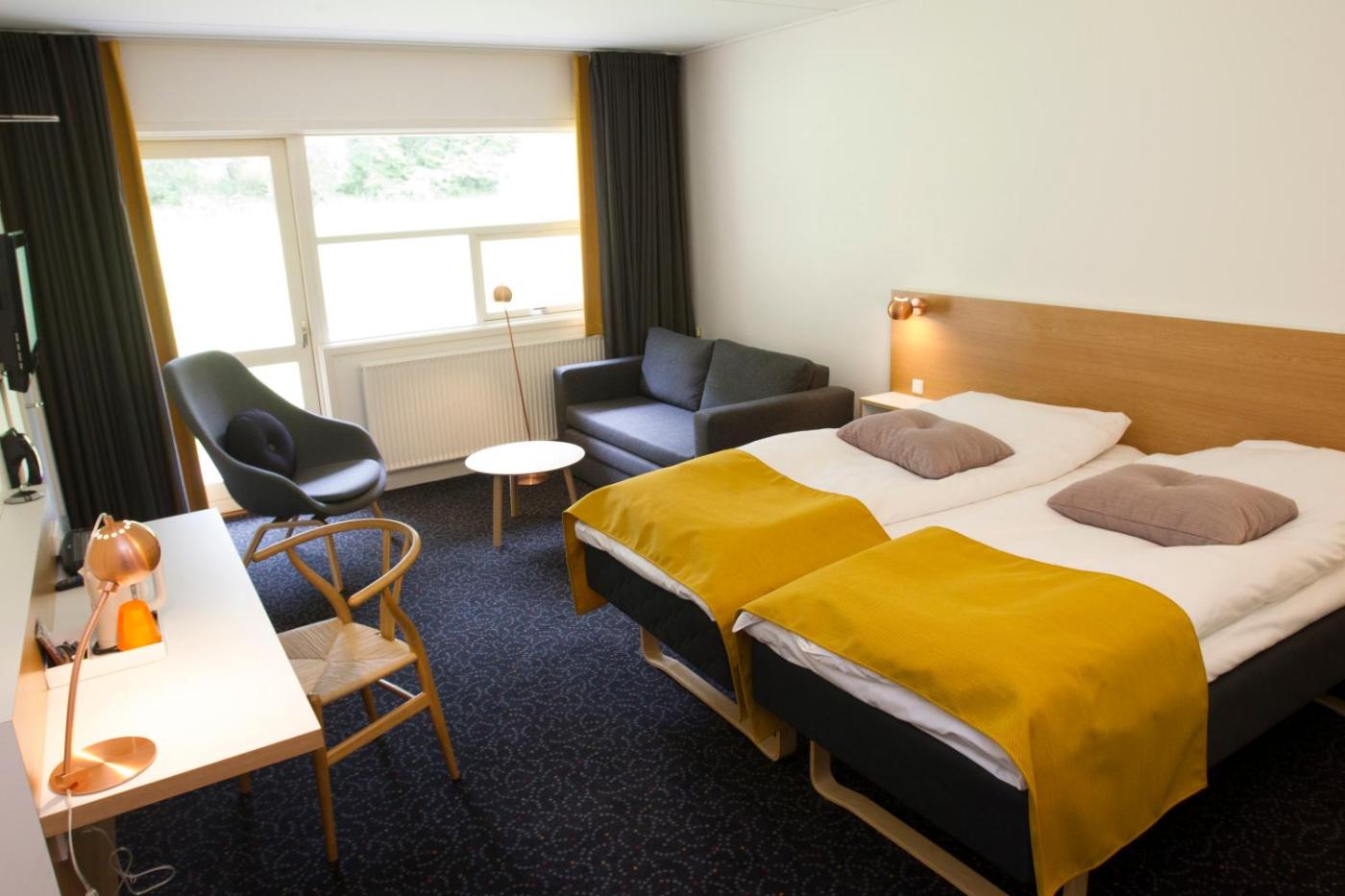 In addition to a private balcony,rooms at Comwell Rebild Bakker offer a desk, TV and safe. Each room overlooks the surrounding countryside.