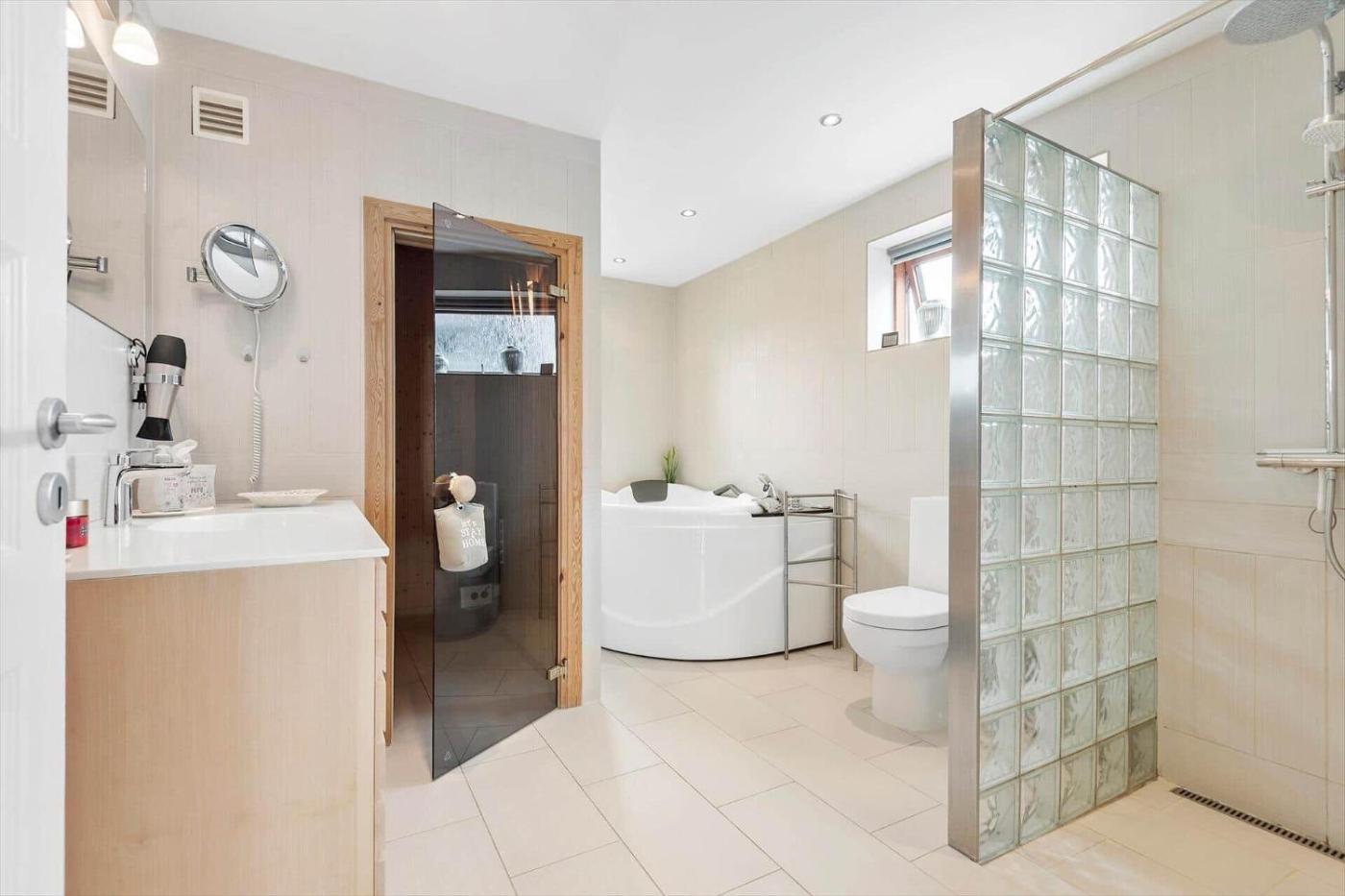 Holiday Home. This holiday home boasts a hot tub and a sauna. Featuring 3 bedrooms and 2 bathrooms with a shower, this spacious holiday home offers a well-fitted kitchen and a terrace. Guests will find a refrigerator, a dishwasher and an oven in the kitchen. The holiday home also offers a barbecue. The holiday home provides a washing machine, a tea and coffee maker, tumble dryer, a TV, as well as sea views. The unit has 4 beds.