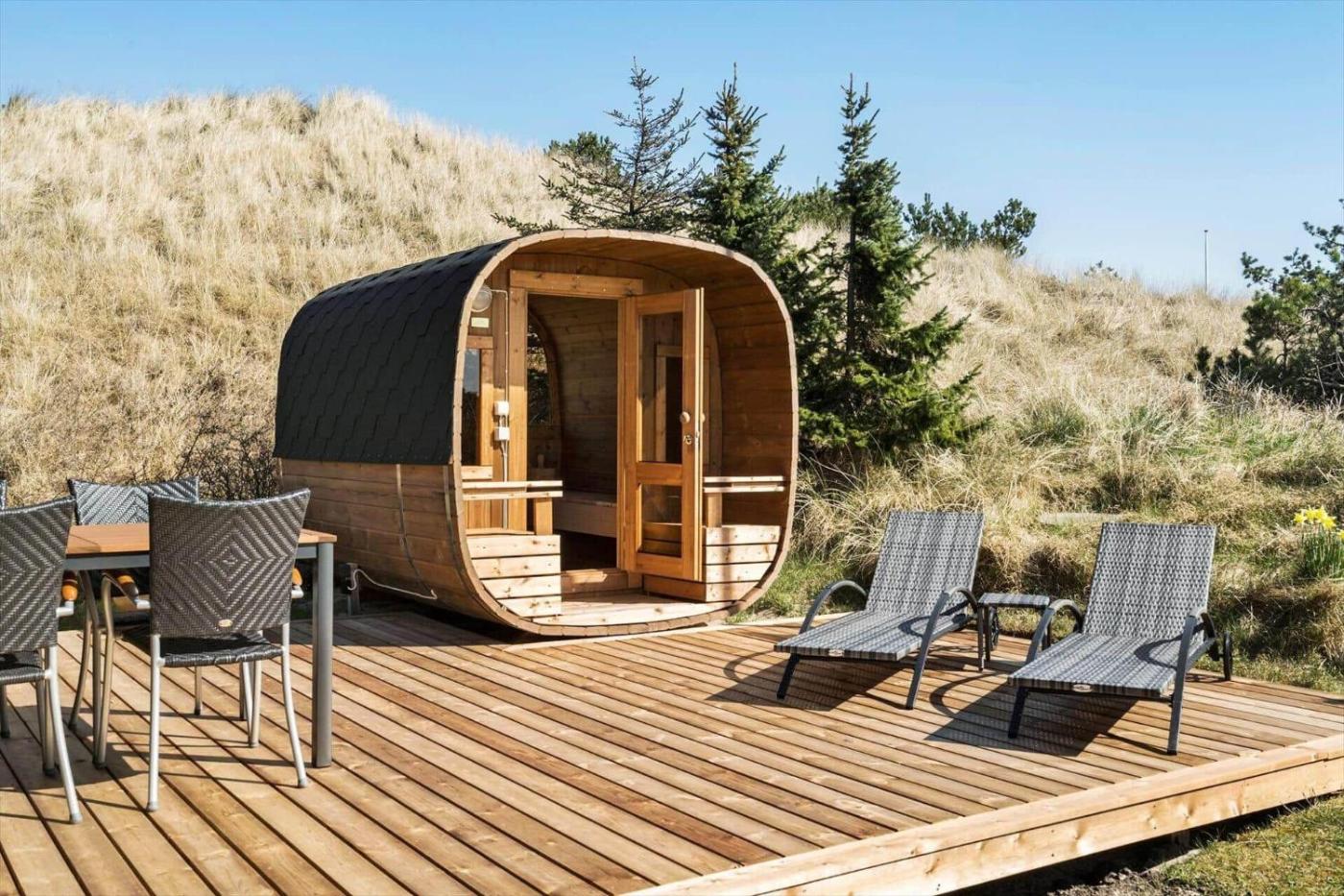 Holiday Home. Guests will have a special experience as the holiday home provides a sauna. Featuring 3 bedrooms and 1 bathroom with a shower, this holiday home offers a well-fitted kitchen and a terrace. Guests will find a stovetop, a refrigerator, a dishwasher and an oven in the fully equipped kitchen. The holiday home also offers a barbecue. This holiday home features a washing machine, a tea and coffee maker, a TV and outdoor furniture. The unit has 4 beds.