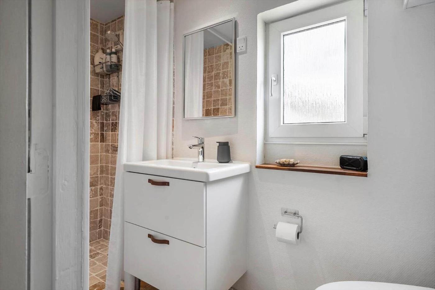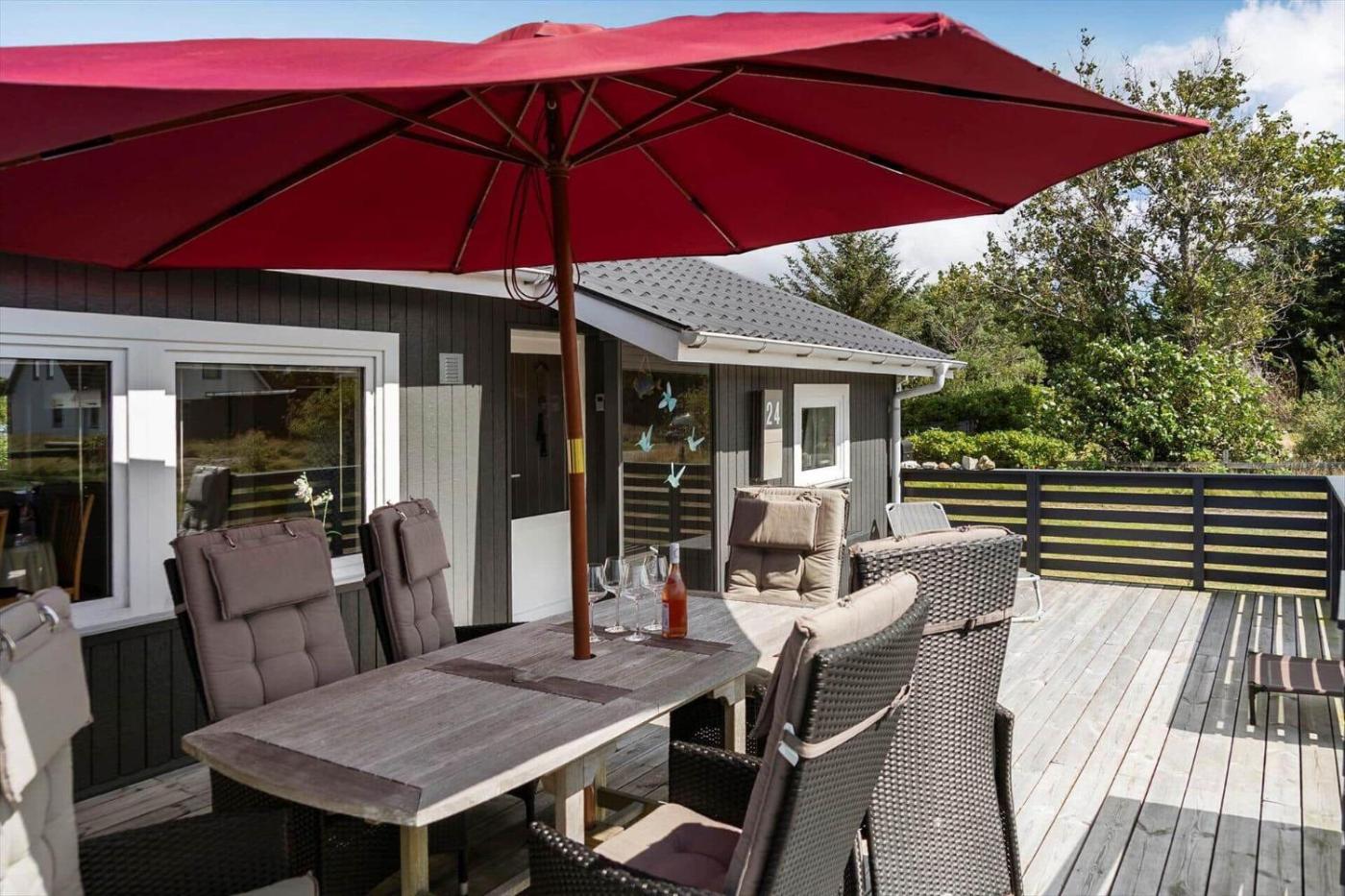 Holiday Home. Boasting 2 bedrooms and 1 bathroom with a shower, this holiday home has a well-fitted kitchenette and a terrace. Guests will find a stovetop, a refrigerator, a dishwasher and an oven in the well-fitted kitchenette. The holiday home also comes with a barbecue. This holiday home has a washing machine, a tea and coffee maker, a TV and outdoor furniture. The unit offers 2 beds.