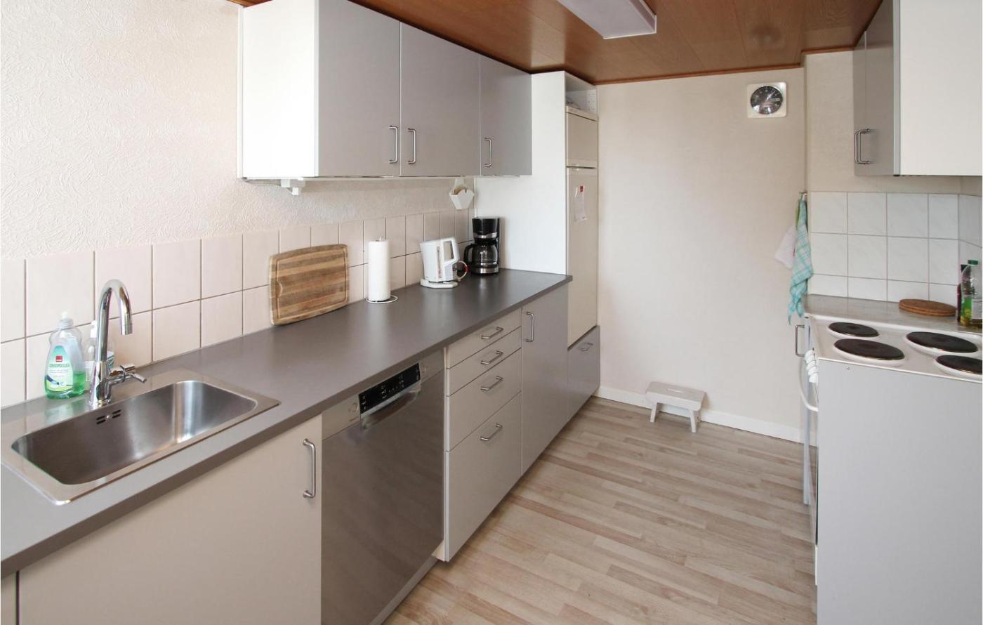 Two-Bedroom Holiday Home. Boasting a private entrance, this holiday home includes 1 living room, 2 separate bedrooms and 1 bathroom with a shower. Guests can make meals in the kitchen that has a stovetop, a refrigerator, a dishwasher and kitchenware. This holiday home has a dining area, heating and a TV. The unit has 3 beds.